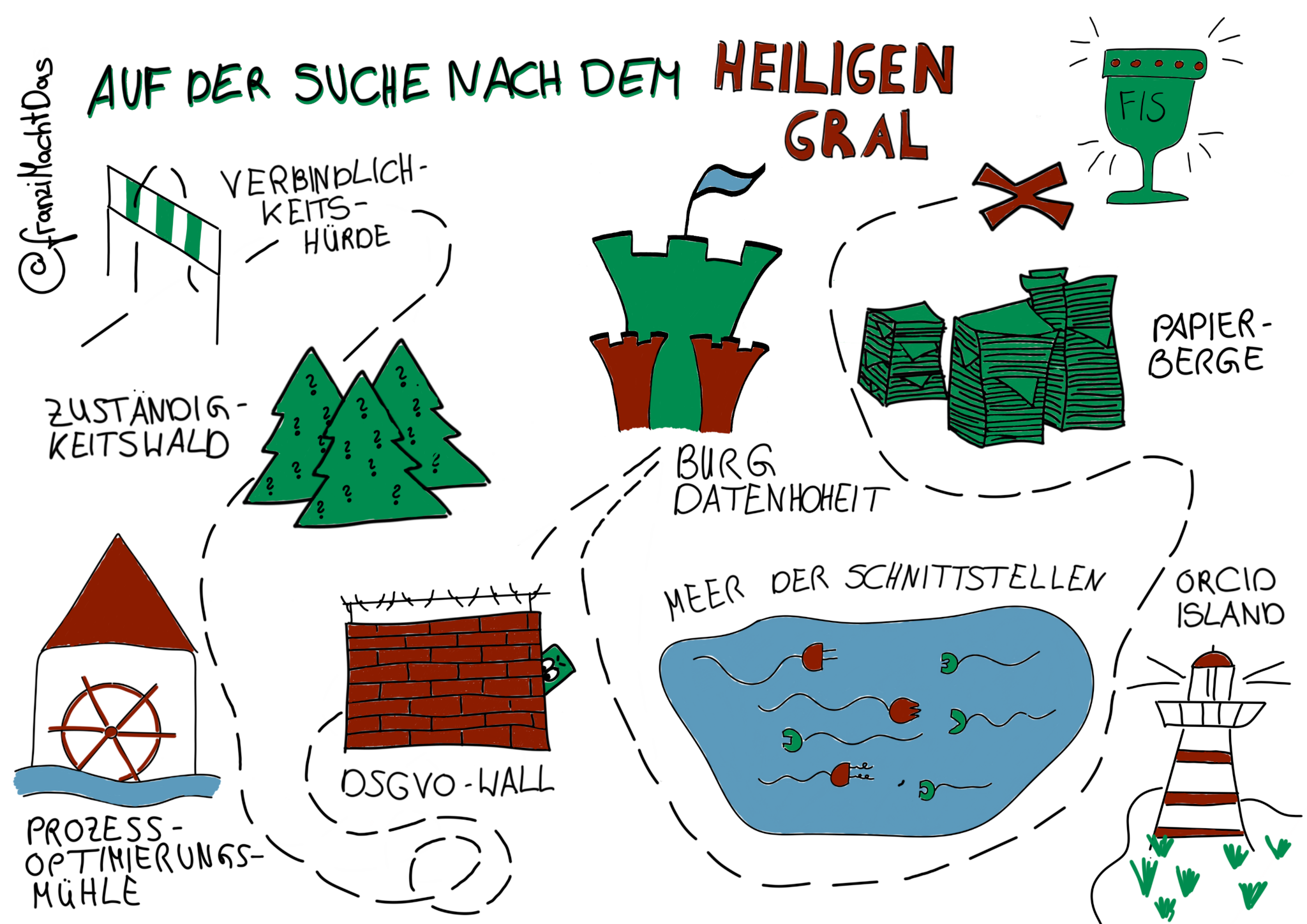 Eine zentrale Herausforderung beim Aufbau eines FIS besteht darin, einen Überblick über die bestehenden Quellsysteme der Einrichtung zu gewinnen. In diesem Zusammenhang ist zu ermitteln, welche internen und externen Systeme relevant sind und wer die entsprechenden Ansprechpersonen an der Einrichtung sind. Dies betrifft u. a. die Bibliothek (z. B. Repositorien), die Personalverwaltung (Identitätsmanagement), die Drittmittelverwaltung (Datenbank für Projekte), die Doktorand*innenverwaltung oder die Patentverwaltung der Einrichtung.